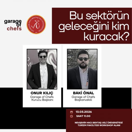 “Bu sektörün geleceğini kim kuracak?” başlıklı söyleşi kapsamında, Garage of Chefs Kurucu Başkanı Onur Kılıç ve Garage of Chefs Başkanvekili Baki Önal, gastronomi sektöründeki girişimcilik deneyimleri, mesleki kariyer süreçleri ve sektörel gelişmeler üzerine bilgi ve deneyimlerini öğrencilerle paylaşacaktır.